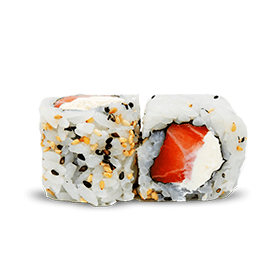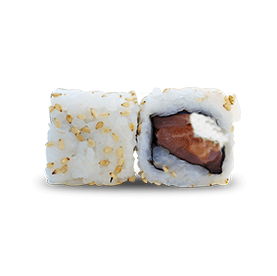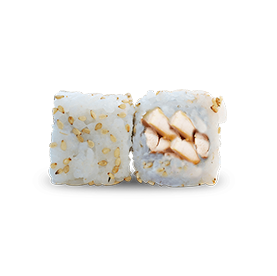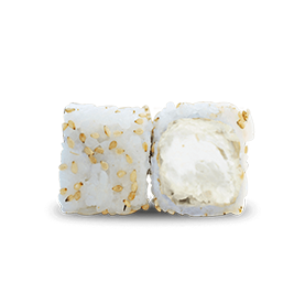 Rouleau de riz inversé, garni avec graines de sésame.